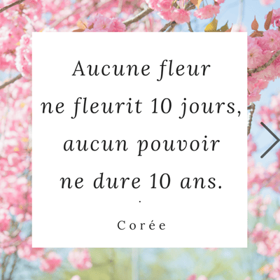 1. Aucune fleur ne fleurit dix jours, aucun pouvoir ne dure dix ans, Corée du Sud.
